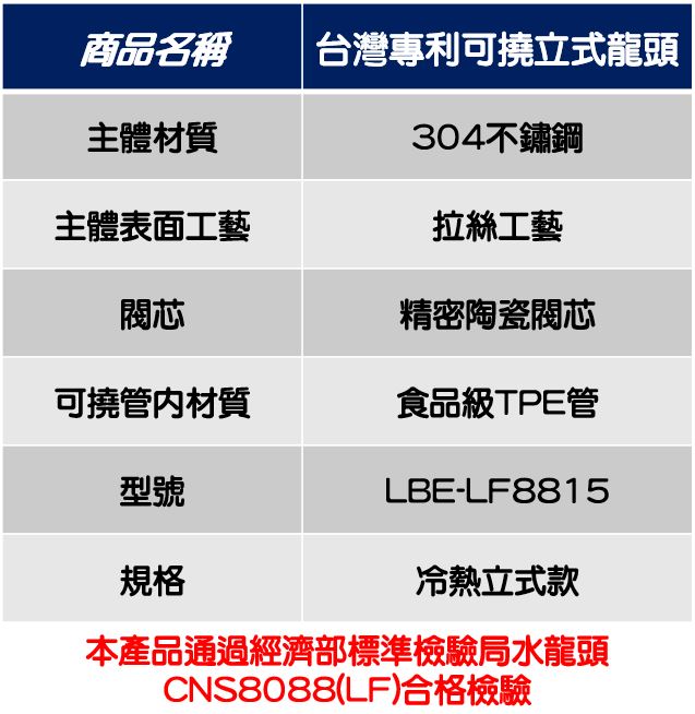 / LBE-LF8815 LF認證 台灣專利可撓立式冷熱龍頭
