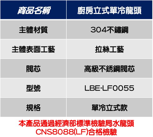 / LBE-LF0055 LF無毒認證 廚房立式單冷龍頭